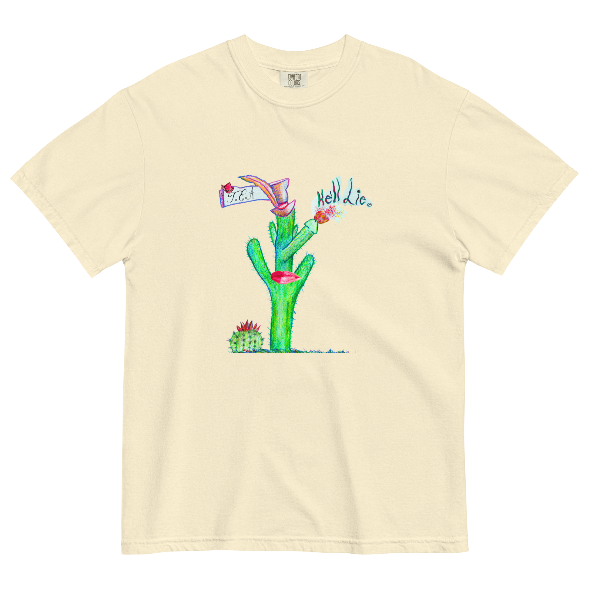 This unisex garment-dyed heavyweight 'He'll Lie' T.E.A-shirt is a total must-have. Featuring deconstructed artwork originally created for the single 'He'll Lie' on front, and a Bunny Succulent on an outside stitch on back. All artwork is created by T.E.A